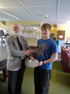 (Photo: Andy Meyers of East Grinstead (right) receives the Felbridge Bowl for overall winner of Class A Cup from Club Vice-President Richard Nichols)