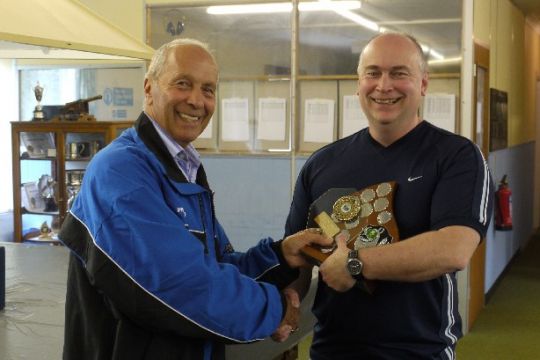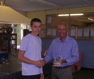 (Photo: Andy Meyers, WInner Class A receiving the trophy from Malcolm Brain, Club Secretary.)